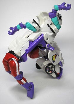 | 「へぇ、自動車だけにカー用品か。 差し替えなしでちゃんと変形するし、地味だけど面白いわね。 モチーフを合わせてあるところも好感がもてるわ。 どれどれ、ドナテロに持たせて…って、あれ?」 |
