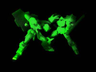 で、↓肝心の弾丸Xのパワーによりミドリ色に輝くガオガイガーと超竜神!